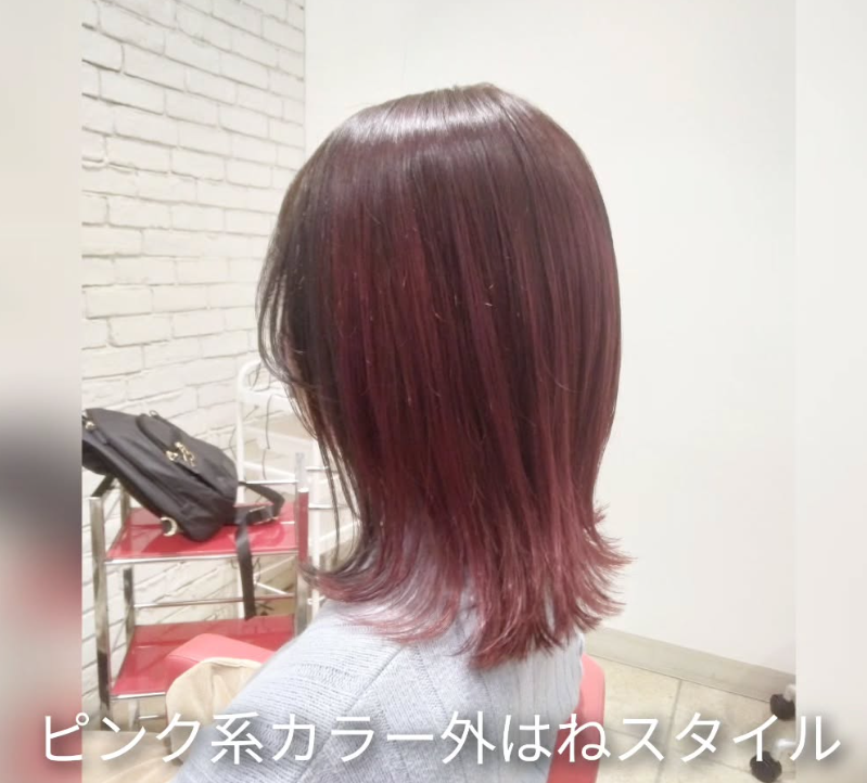 顔周りダーク系インナーカラーのピンクカラー外はねスタイル☺