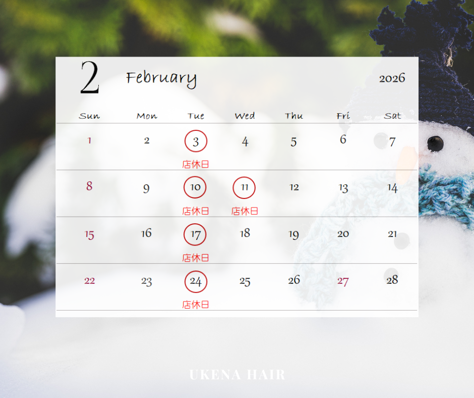 2月のお休みです。 ・3日(火) ・10日(火) 11日(水)連休 ・17日(火) ・24日(火) ご来店お待ちしております。🙇